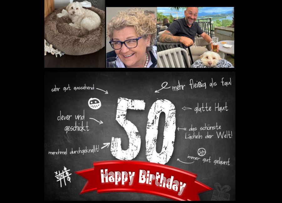 Zum Fünfzigsten und die künftigen reifen Jahrzehnte, wünschen wir Dir von Herzen gute Gesundheit & das Allerbeste🥳🥳🥳